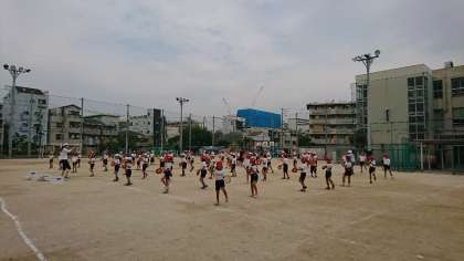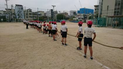 3・4年生は、今日から運動場での練習が始まりました。綱引きと団体演技の練習をしていました。
