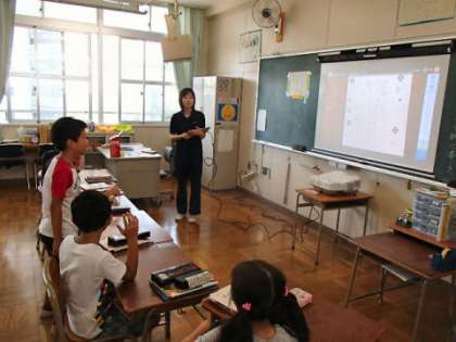 タブレットとプロジェクターを効果的に活用した授業で、子どもたちも楽しく、いきいきと活動していました。
