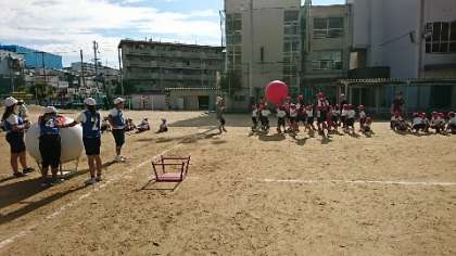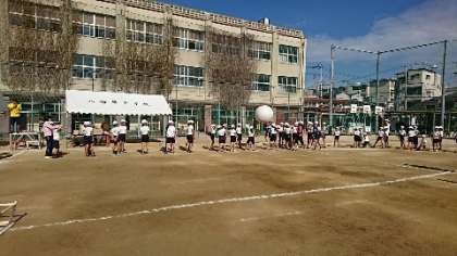 今回は、主に、全体競技の大玉おくりと応援練習を行いました。