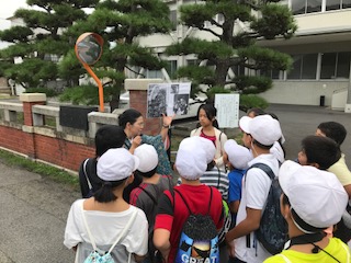 「西光寺の高橋さんの案内で観音寺の街を紹介してもらいながら、小学校に着きました。