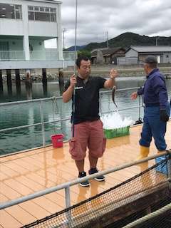 香川県のハマチの養殖についての学習をした後に鯛釣りにいきました。