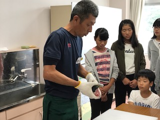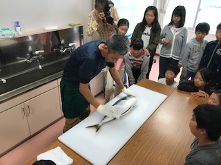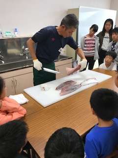 「釣りの後はハマチの解体を実際に目の前で見せていただきました。