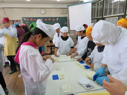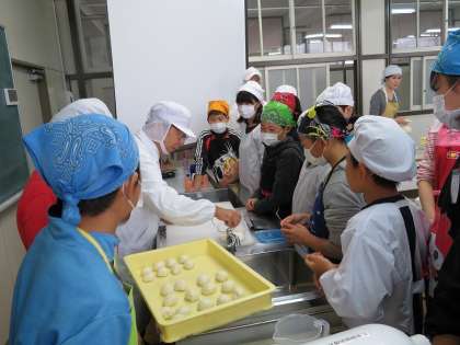 今日は、大港食品様のご協力で、6年生がパン作り教室を受講しました。