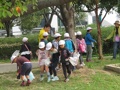 どんぐりやきれいな落ち葉を集めたり、野草を使った遊びを教えていただいたりしました。