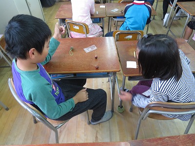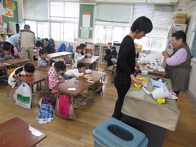 そのあと、学校へ移動して、どんぐりを使った工作を教えていただきました。