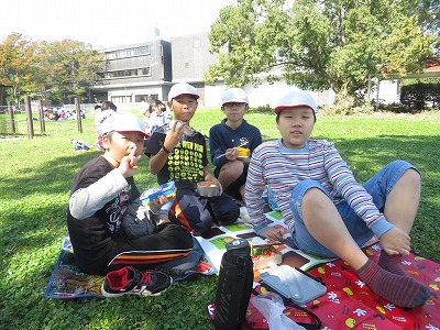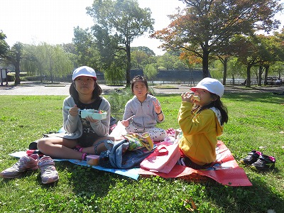 しっかり見学したあとは、広い芝生の上で、お弁当を食べました。
