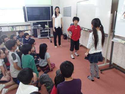 連休前の学校の様子を一挙アップです。まずは、5月2日の2年生と4年生の「外国語の体験学習」です。この日は、5・6年生が遠足のため、NSACのMAYO先生に2年と4年の英語学習に入っていただきました。