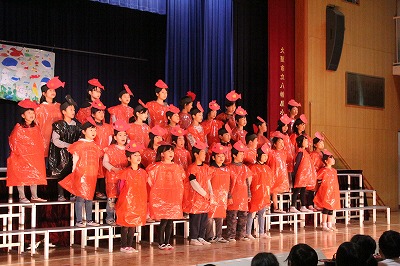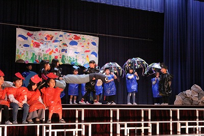 2年生は、「スイミー」。さまざまな海の生き物が登場するファンタジックな劇でした。協力することの大切さが伝わりました。