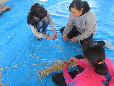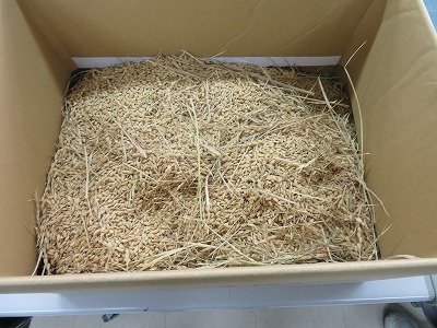 豊作です。このあとは、もう少しわらを取ってから、「もみすり」「精米」をして、調理実習でいただく予定です。楽しみですね。