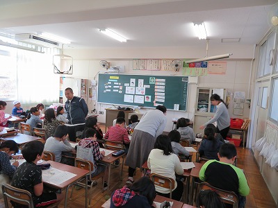 28日には、栄養教諭による栄養の研究授業が4年生でおこなわれました。主題は「よくかんで食べよう」で、かむことの大切さを知り、よくかんで食べることの大切さに気付かせることがめあてでした。学習の中で、昔の人に比べて、かむ回数が少ないことに気づき、かむことによって、体に良いことがあることを知りました。