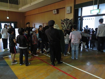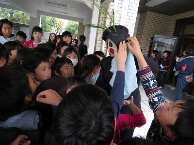 退場のさい、劇団の方々と人形たちとふれあうことができました。最後まで楽しませていただきました。ありがとうございました。