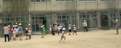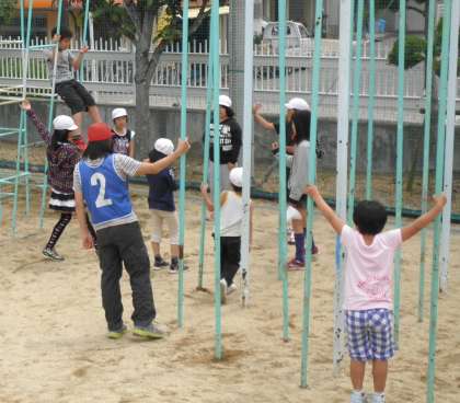 先週編成した学年たて割りのキッズチームに分かれて、今日も20分休みの時間に遊びました。