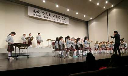 今日は、キッズバンドのみんなが、「第50回管楽器ウィンターフェスティバル」に参加しました。大阪府下の小学校が30校も参加する大きなイベントでした。