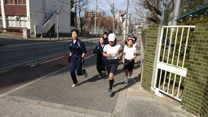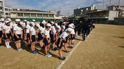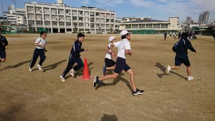 駅伝大会に向けて、6年生は港中学校での練習に参加しました。中学校の二年生と一緒に運動場や中学校外周を走りました。中学生はさすがですね。運動場を走るときは、とても速かったです。また、外周を走るときは、小学生のペースに合わせて走ってくれました。子どもたちもよくがんばっていました。本番は25日木曜日の午後になります。港中学校、池島小学校、八幡屋小学校の三校が参加します。