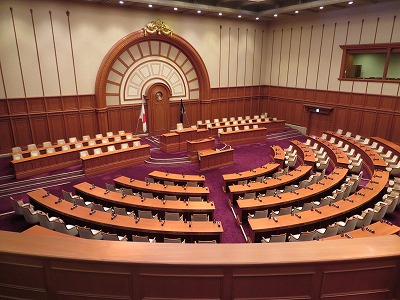 下 今回は議場に入れました。議場には入れないことが多いので、今回はラッキーでした。