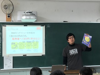 寄付で、1人に一冊、ビッグイシューをもらいました。家庭でも読んでみてください。