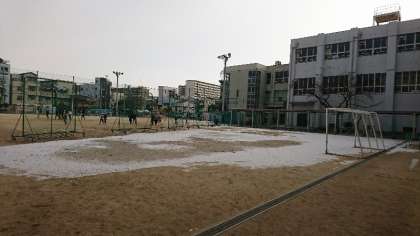 上 心配された雪。すっかり氷になっていました。危ないので、遊べず。