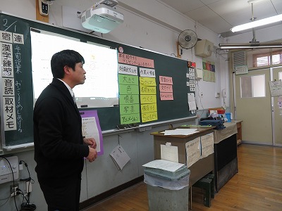 今日は、6年生で研究授業がありました。教育センターから授業づくり指導員の園邊先生に来ていただいてのICTを活用した授業でした。