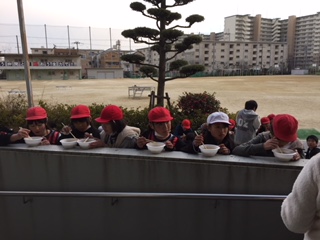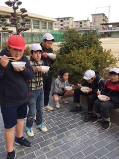 走ったあとは、PTAや地域の方々が作ってくださった豚汁をいただきました。体も温まって、とてもおいしかったそうです。