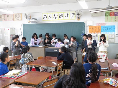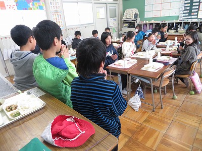 この日は、前回できなかった3年生と5年生で交流給食がありました。待った分だけ、楽しい交流給食になりました。