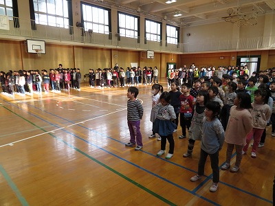 今日は1〜5年生で卒業を祝う会の練習がありました。