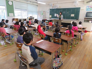 下 始業式の間、一年生は教室で学習していました。