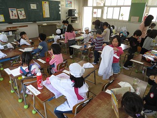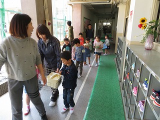下 しばらくの間、持ってくるのは6年生がしてくれますが、帰りは自分たちで。