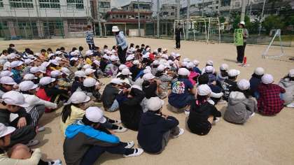 想定は火事です。避難する途中で、おしゃべりしてしまう児童がいたのが残念でした。