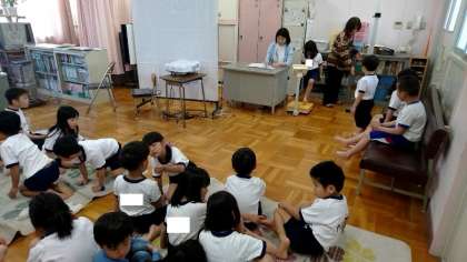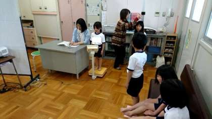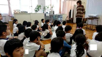 最初に、保健室の先生から、保健についてのお話を聞きます。