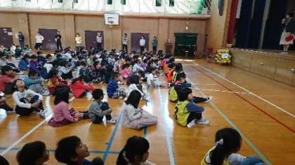 上 最後に「ハローハロー」と「校歌」を歌いました。上級生たちの美しいハーモニーに、一年生たちも早く参加できるといいですね。