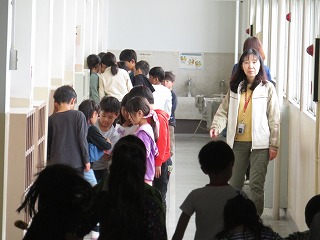 中下 説明係は、特別教室の前で説明をして、シールを貼ります。セリフをすっかりおぼえている子もいました。