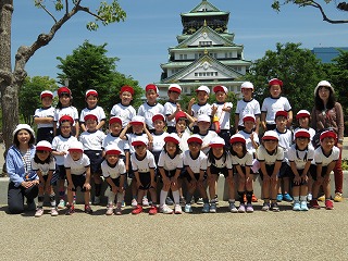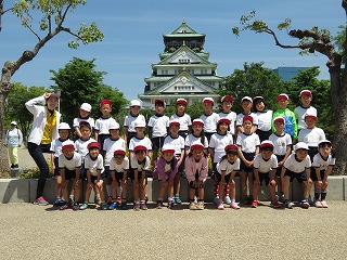 上 青空と大阪城をバックに集合写真を撮りました。一年生