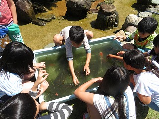 まず、鯉やめだかを救出してから、池のそうじをしました。