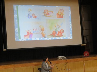 昨日の児童朝会では、校長先生が、命の大切さを伝える読み聞かせをしました。