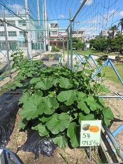 5年生のかぼちゃが、ずいぶん成長してきました。