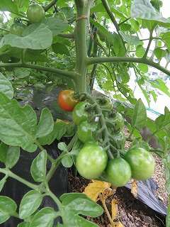 (下)なかよしのプチトマトには色がついてきました♪