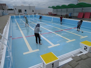 2日間にわたり、プール清掃が行われました。