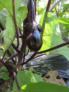 飼育栽培委員会のナスです。まだまだ小さいですが、きれいに実ができてきました。