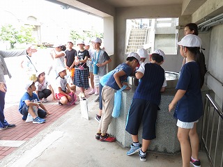 きれいとは言えない淀川の水が、だんだん澄んだ水に代わっていく様子を観察しました。