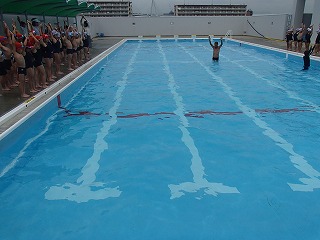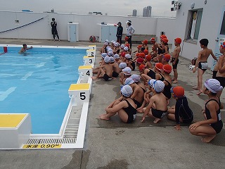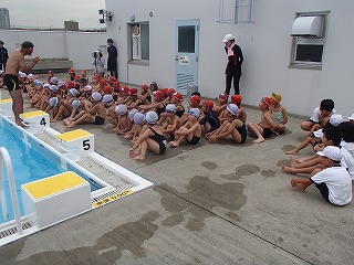 今日は、低学年と中学年で、港中学の学校力アップコラボレーターの白石先生に来ていただいての水泳指導がありました。