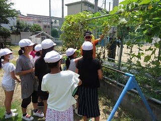 5年生は、理科の授業で、ヘチマやキュウリ、カボチャ、スイカ、ゴーヤ、ヒョウタンの花を観察しました。