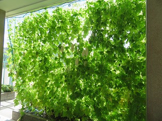 白ゴーヤの緑のカーテンです。太陽の光をやわらげてくれました。