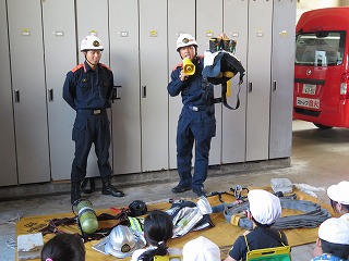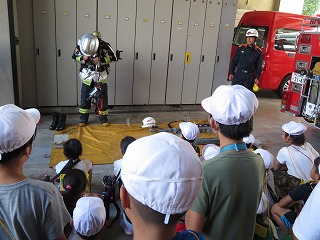 下 消防服への着替えは1分以内に行われるそうです。