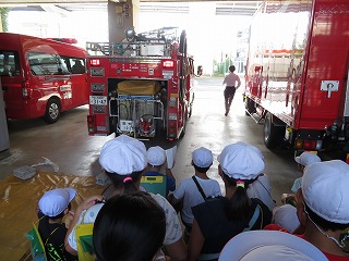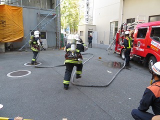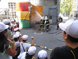 消防車の発進、現場への到着、放水の様子を実際に見せていただきました。
