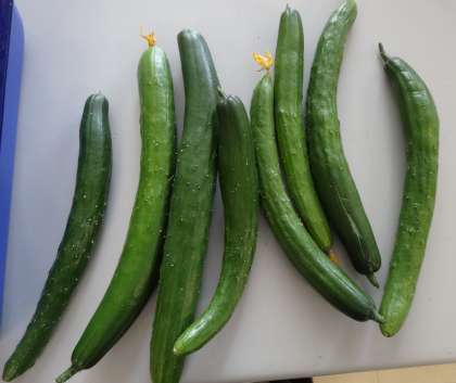 暑い日差しの下、野菜や花がすくすくと育っています。2年生のきゅうりや6年のじゃがいもも豊作です。