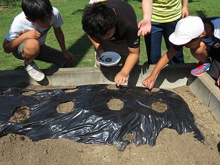 飼育栽培委員で、青首大根の種まきをしました。早ければ来週にも芽がでるでしょう。