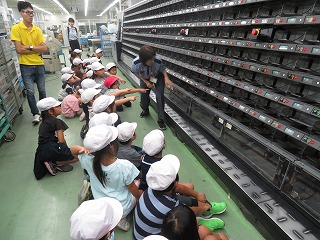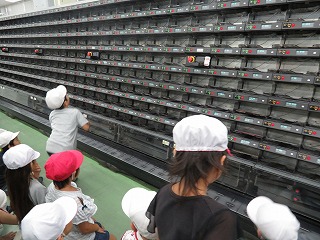 上中 郵便番号で種分けする機械です。速さと迫力に子どもたちは大喜びでした。