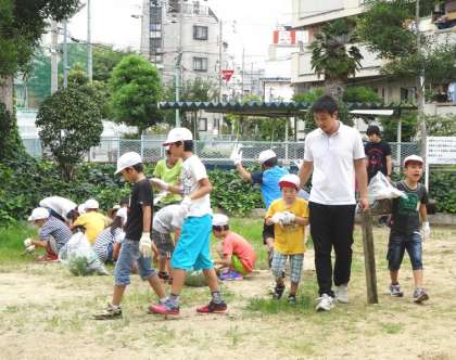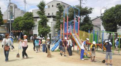 保護者の方にも協力していただき、地域の公園をきれいにしました。
