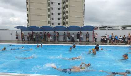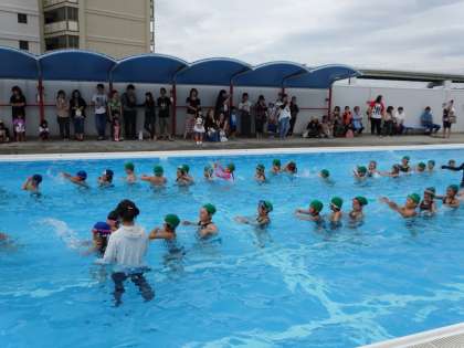「初めて屋上プールに来た」とおっしゃる保護者も多かったので、天気が何とかもち、実施することができて、良かったです。