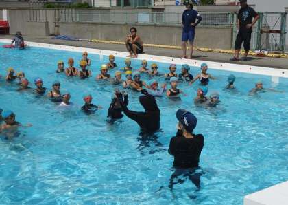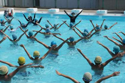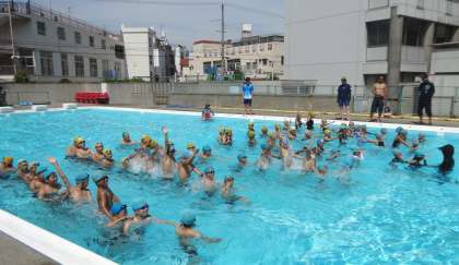 7/16 5・6年生  シンクロ体験1(港中学校プール)